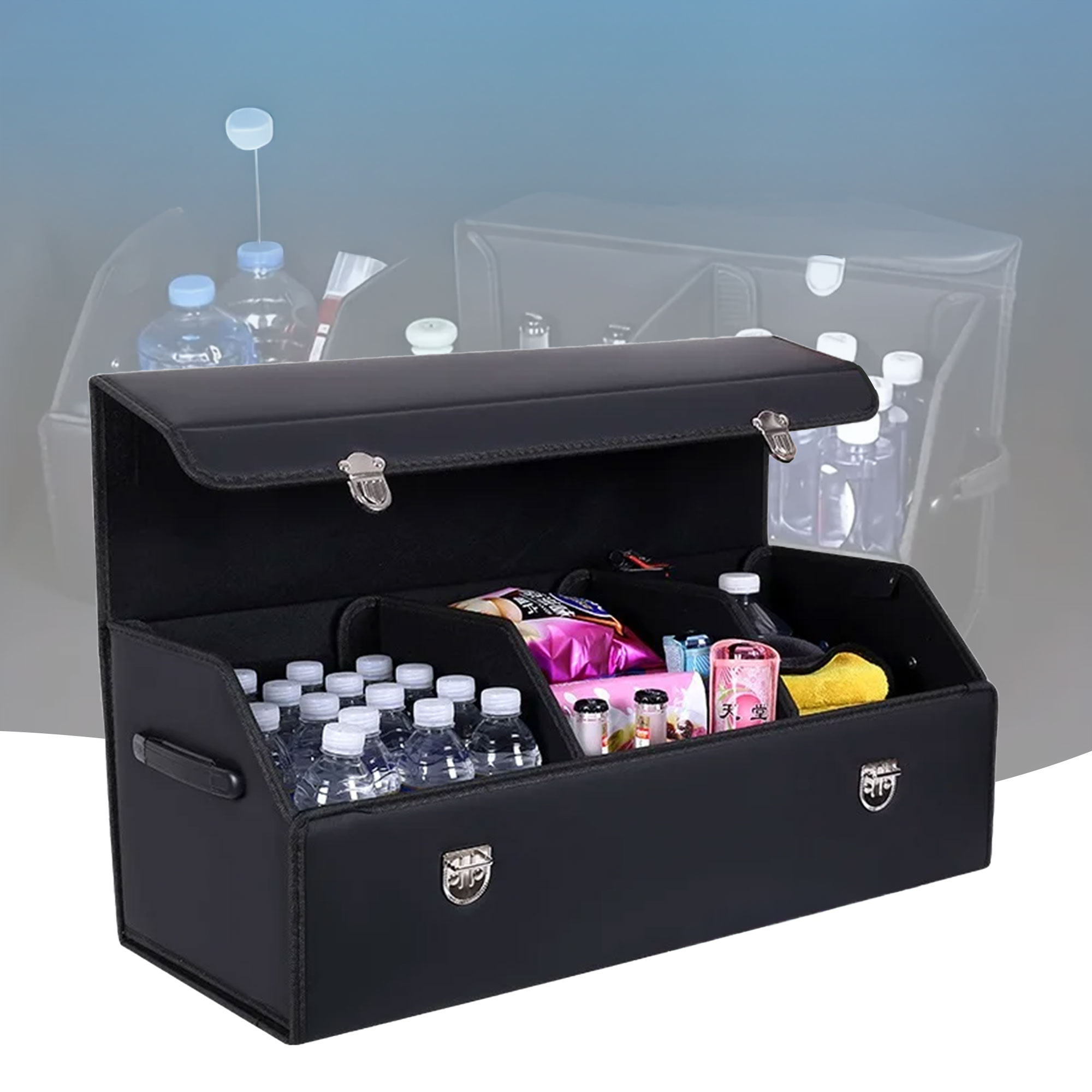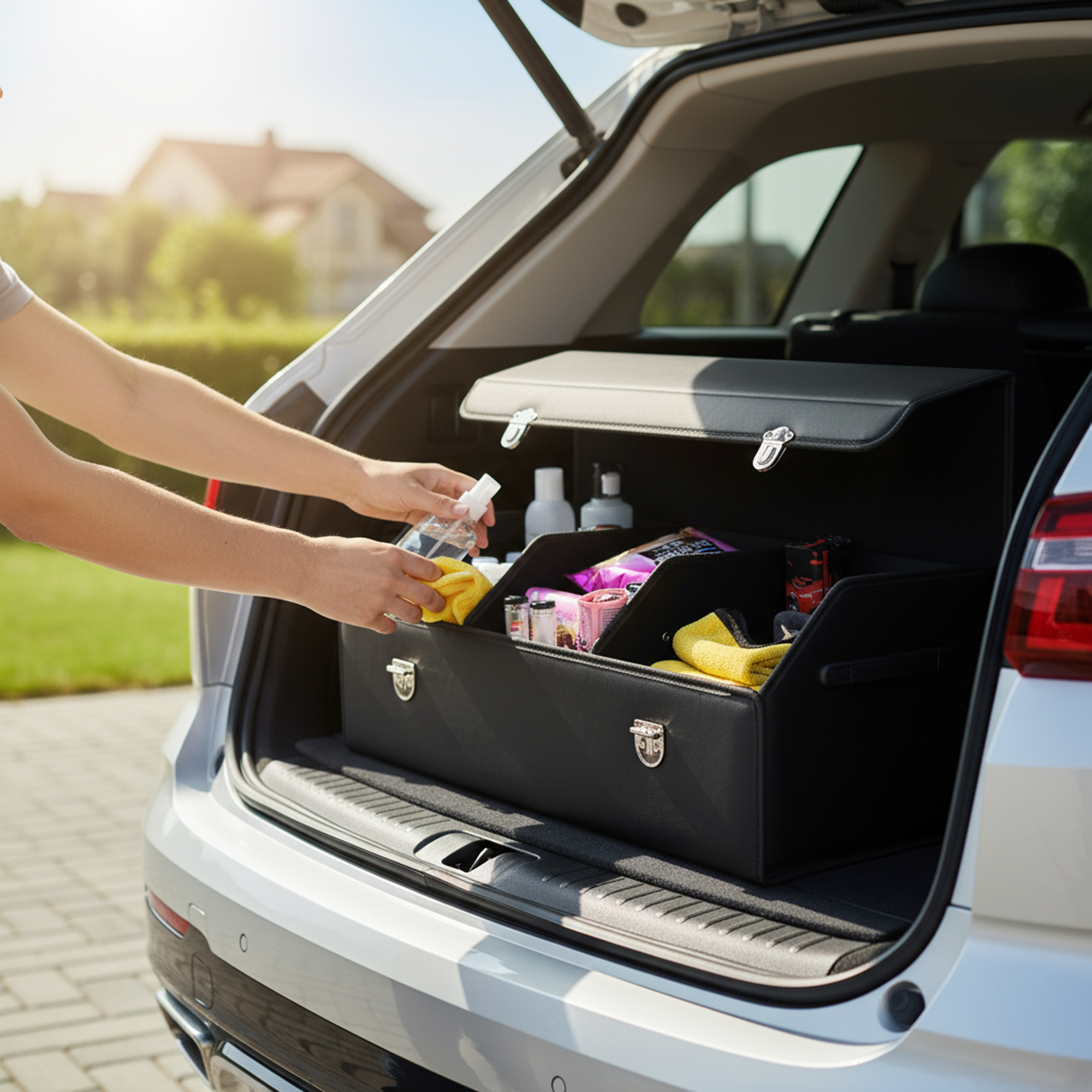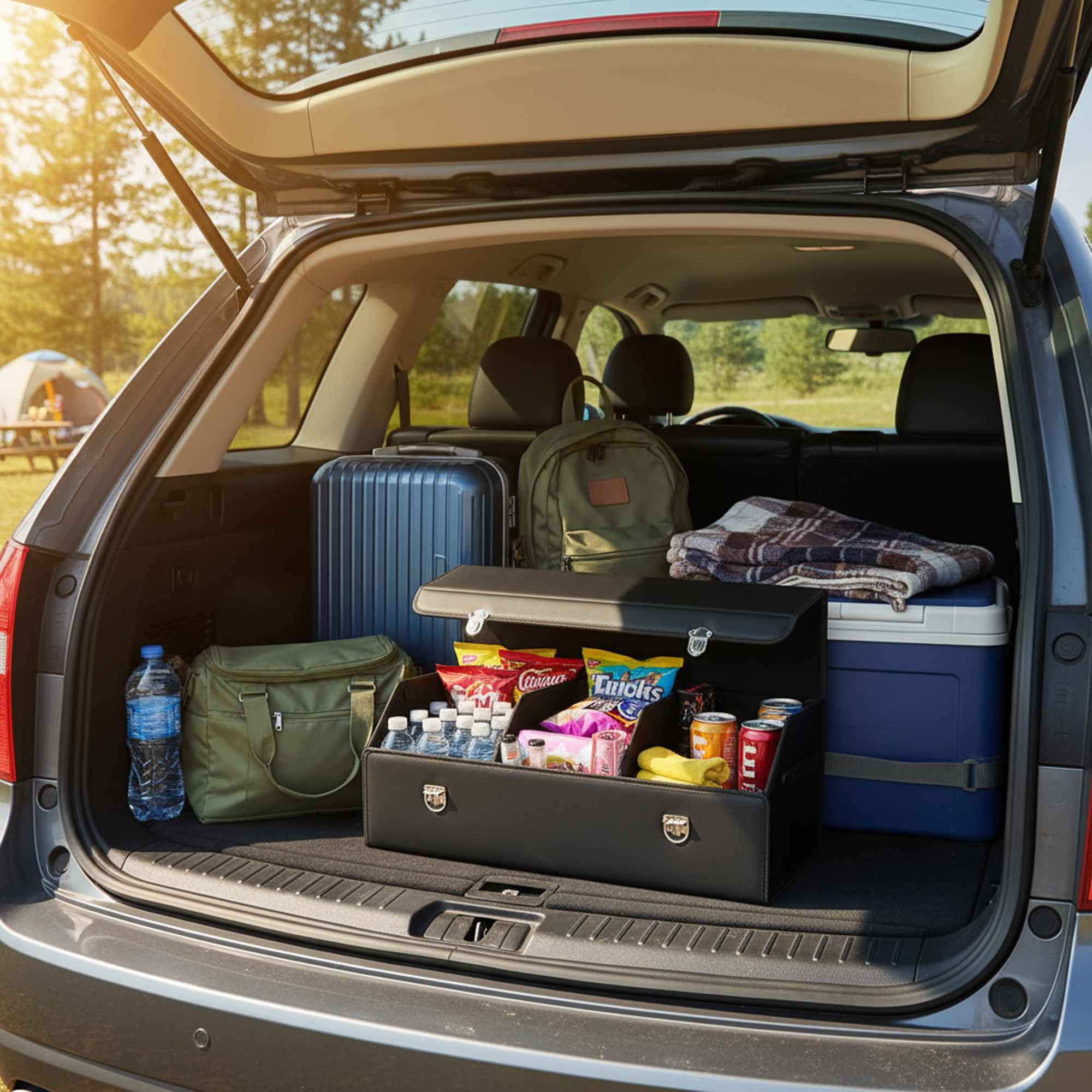افتح المنظم وضعه في صندوق السيارة أو المقعد الخلفي.