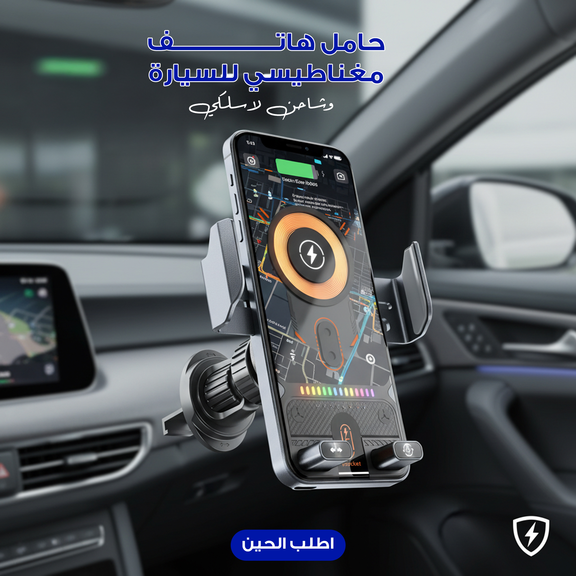 حامل هاتف مغناطيسي للسيارة، وشاحن لاسلكيحامل هاتف مغناطيسي للسيارة، وشاحن لاسلكي